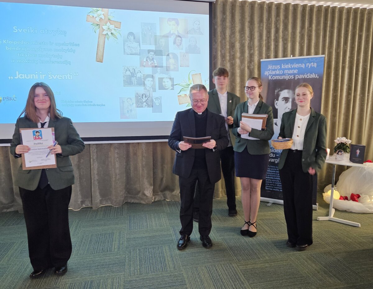 Lapkričio 26-ąją Klaipėdos miesto pedagogų švietimo ir kultūros centre vyko mokinių konferencija „Jauni ir šventi“, kuri buvo skirta pažinti šventuosius, jų gyvenimą, veiklą ir vertybes. Renginyje susirinko mokiniai iš įvairių Klaipėdos miesto ir apskrities mokyklų ir įvairiais ir kūrybiškais būdais pristatė jaunus šventuosius: Karolį Akutį, Petrą Jurgį Frasatį, Kazimierą, Dominyką Savio, Mariją Goreti, Kjarą Lučę Badano, Adelę Dirsytę, Fatimos regėtojus, Agnietę, Filomeną Žada d‘Ark...