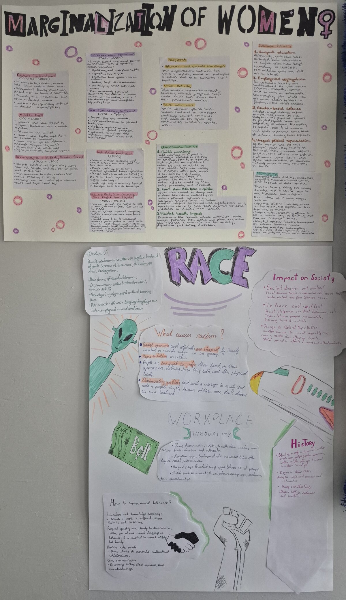 Mūsų mokiniai smalsūs ir gabūs ir gebantys rinkti ir pateikti informaciją. Taigi jų buvo paprašyta išsirinkti juos dominančią temą ir surinkti duomenis (statistiką, specifinio žargono išsireiškimus ir pan.) apie skirtingas visuomenėje vienaip ar kitaip atskirtas, kenčiančias grupes ir, kūrybiškai bendradarbiaujant, sukurti, kūrybinius informacinius plakatus.