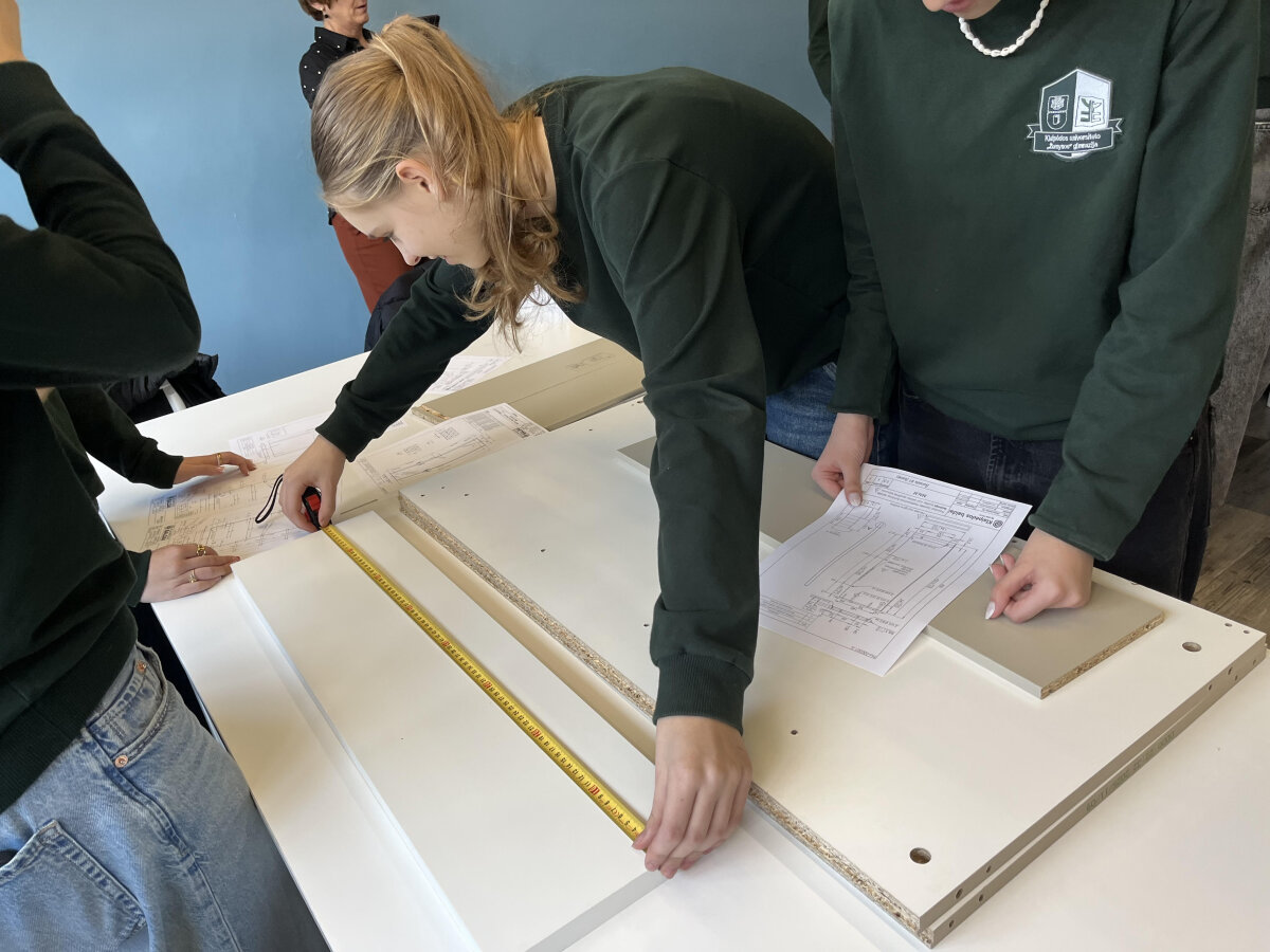 2025 metų lapkričio 12 dieną mūsų partneriai ,,Klaipėdos baldai“, SBA Home įmonė, pakvietė I d klasės mokinius į turiningą ir įkvepiančią praktinių įgūdžių pamoką. Vizito metu mokiniai  susipažino su įmonės veikla, klausėsi pasakojimo apie „SBA Home“ istoriją, jos augimą, sėkmės pasiekimus bei įvairias karjeros galimybes. Gimnazistai sužinojo, kaip gimsta baldų idėjos, kokie specialistai dirba įmonėje ir kokių gebėjimų reikia skirtingiems darbams atlikti. Po pažintinės dalies mokiniai buvo suskirstyti į dvi komandas ir pakviesti dalyvauti smagioje „Kahoot“ viktorinoje, kurioje reikėjo atpažinti ir paaiškinti įvairius darbų žodynėlio terminus. Viktorina sukėlė daug juoko, azarto ir norą laimėti, o kartu padėjo įtvirtinti naujus žodžius bei sąvokas. Toliau laukė praktinė užduotis – pagal brėžinius teisingai surinkti stalčių. Ši veikla pareikalavo atidumo, loginio mąstymo ir komandinio darbo, tačiau mokiniai puikiai susidorojo. Jie sužinojo, kodėl svarbu laikytis instrukcijų, kokią reikšmę turi kiekviena brėžinio detalė ir kaip atrodo realus gamybos procesas. Edukacija buvo ne tik informatyvi, bet ir įtraukianti – gimnazistai grįžo kupini įspūdžių, naujų žinių ir įkvėpimo.