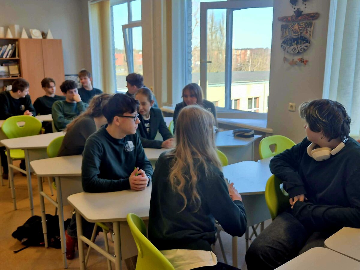 Minėdami kasmetinę akciją „Savaitė be patyčių“, gimnazijos pirmų klasių mokiniai dalyvavo debatuose, kuriuose nebuvo vieno teisingo atsakymo – tik stiprūs argumentai, kritinis mąstymas ir bandymas suprasti sudėtingas patyčių priežastis bei pasekmes. Debatus vedė socialinė pedagogė Daiva S. ir mokinių senato prezidentas Danielius P. Debatų metu mokiniai pasiskirstė į teigiančiųjų ir neigiančiųjų komandas. Buvo paliestos itin jautrios ir aktualios temos: Kas atsakingas už saugumą mokykloje? Diskutuota, ar už patyčių sustabdymą labiau atsakinga gimnazijos administracija, ar patys mokiniai, kurių bendraamžių kultūra iš tiesų formuoja aplinką. Ar piniginės baudos tėvams ir mokinių šalinimas iš gimnazijos yra veiksmingos priemonės, ar tai tik perkelia problemą kitur? Buvo keliamas klausimas, ar stebėtojai, kurie neįsikiša, nusipelno tokių pačių nuobaudų kaip ir skriaudėjai. Mokiniai debatavo dėl socialinių tinklų draudimo asmenims iki 16 metų, anonimiškumo panaikinimo reikalaujant tapatybės dokumentų bei mokytojų teisės tikrinti telefonus įtarus elektronines patyčias. Analizuota, ar konkurencija dėl gerų pažymių skatina mokinius žeminti kitus, ar patyčios visgi kyla iš vertybių ir auklėjimo stokos. Nors nuomonės dažnai išsiskyrė, debatai parodė, kad mokiniai puikiai supranta problemos kompleksiškumą. Mokiniai mokėsi ginti poziciją, su kuria galbūt net nesutinka asmeniškai – tai ugdė jų empatiją ir gebėjimą pamatyti situaciją oponento akimis. Diskusija apie „tylinčius stebėtojus“ privertė daugelį susimąstyti apie savo vaidmenį konfliktinėse situacijose. Ši patirtis parodė, kad devintų klasių mokiniai yra pasiruošę kalbėtis nepatogiomis temomis ir kartu ieškoti būdų, kaip sukurti saugesnę gimnazijos bendruomenę be smurto.