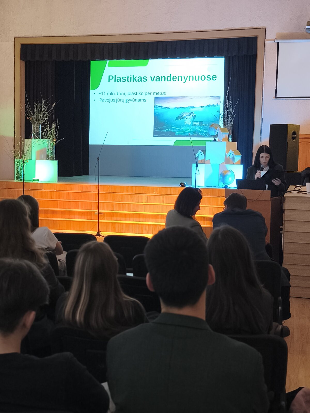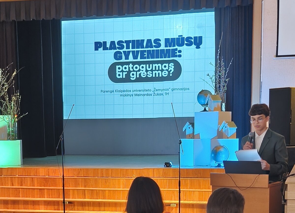 Konferencijoje aktyviai dalyvavo ir mūsų mokyklos mokiniai. I e klasės mokinė Neda S. pristatė pranešimą „Atliekų rūšiavimas: ar mūsų pastangos padeda?“, o I h klasės mokinys Meinardas Ž. kalbėjo tema „Plastikas mūsų gyvenime: patogumas ar grėsmė?“. Mokiniai skatino susimąstyti apie kasdienius pasirinkimus ir jų poveikį aplinkai.