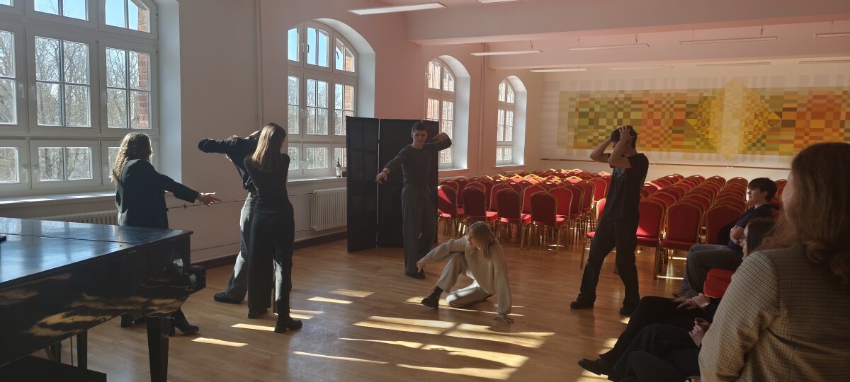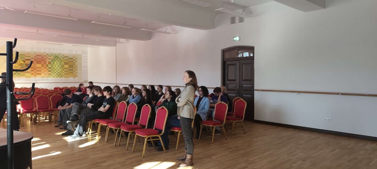 Vasario 4 dieną mūsų gimnazijos teatro dalyko mokiniai kartu su mokytoju Mindaugu Urbonu iškeitė įprastinę teatro pamoką į pasisvečiavimą Klaipėdos universitete, Humanitarinių mokslų fakultete. Jau daugiau nei pusmetį mūsų mokiniai teatro pamokose mokinosi įvairių teatro įgūdžius lavinančių pratimų ir bandė grupėse kurti etiudus (trumpus vieno veiksmo sceninius pasakojimus), o šįkart jie turėjo galimybę pamatyti, kaip antro kurso lietuvių filologijos ir režisūros studentai, vadovaujami dėstytojų Jūratės Grigaitienės ir Virginijos Kochanskytės, kūrė savo etiudus.