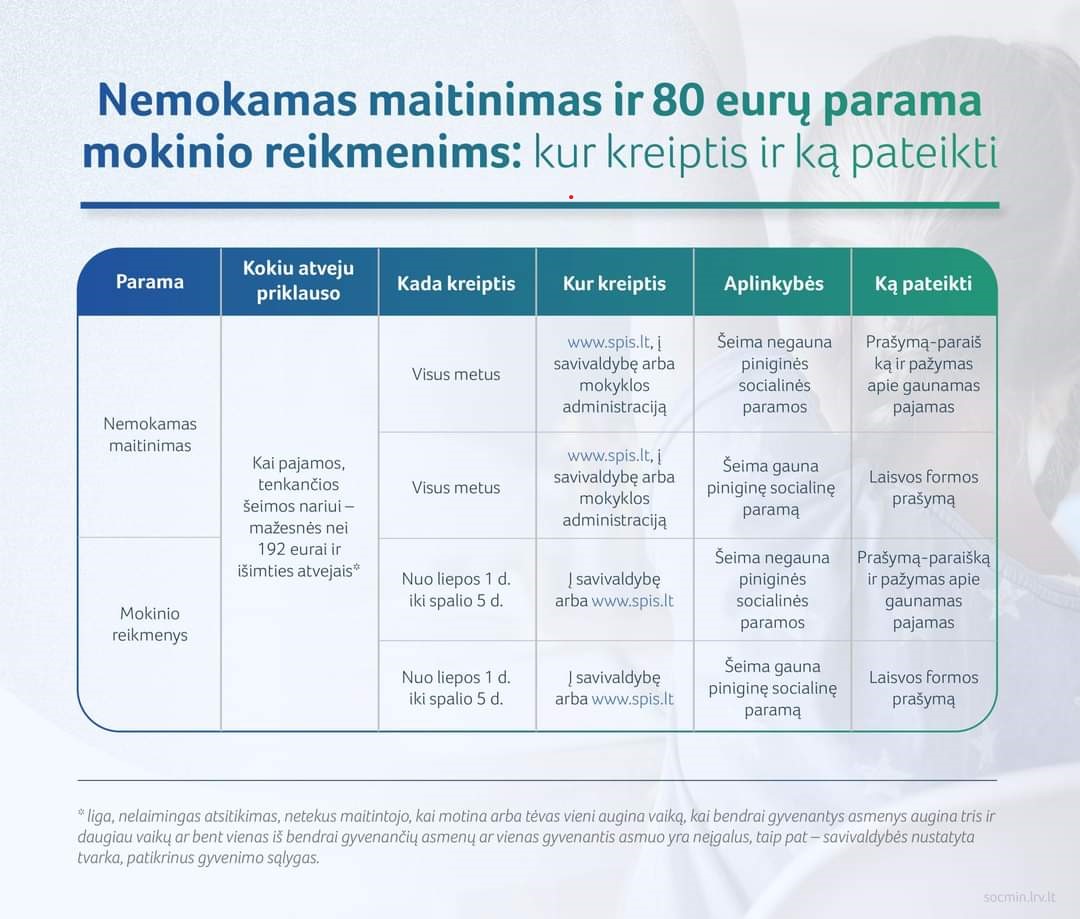 Pridedu nuorodą į informacinį pranešimą Klaipėdos miesto interneto svetainėje https://www.klaipeda.lt/lt/naujienos/skelbimai/7656/socialine-parama-ir-nemokamas-maitinimas-mokiniams:3014?lang=lt